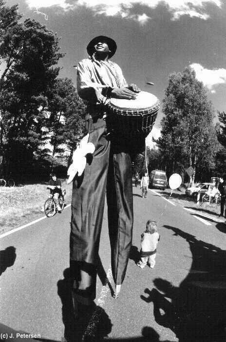Trommeln für das Leben Kreative Einfälle bereichern jede Demo und verleihen ihr häufig Volksfestcharakter wie hier z.B. in Gorleben. 5000 AKW-GegnerInnen versammelten sich am Samstag, den 23.09.00 zu einer unerwartet großen Demonstration vor den Atomanlagen im Wald bei Gorleben. Damit hat die Anti-AKW-Bewegung überaus eindrucksvoll gezeigt, daß mit ihr wieder zu rechnen ist, wenn in nächster Zeit wieder Atomtransporte rollen sollen. (29.10.00) |