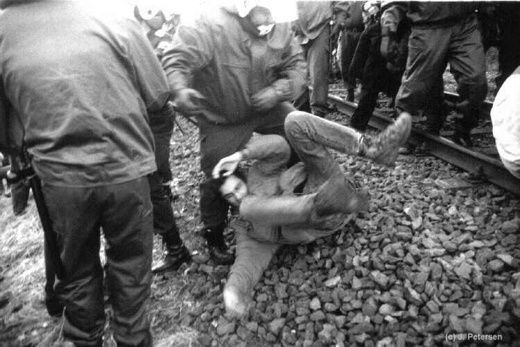 Blockade der Bahnstrecke Lüneburg - Dannenberg bei Wendisch-Evern am 03.03.97 |