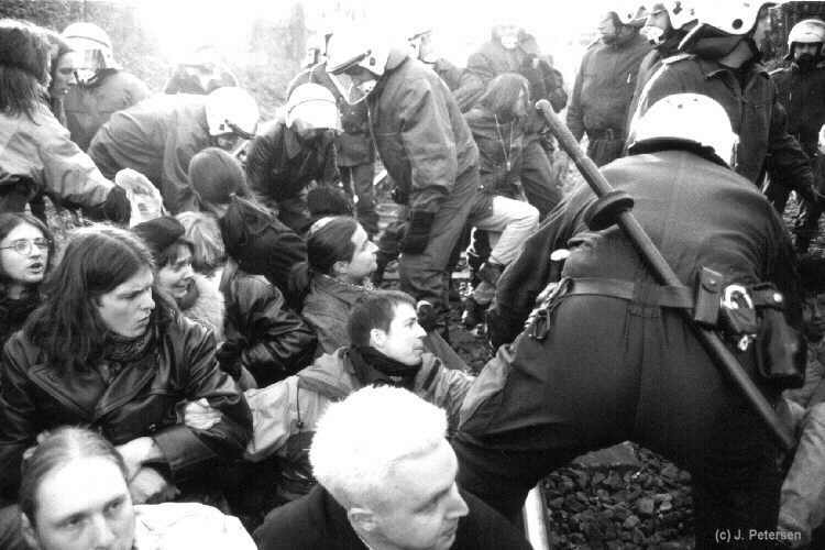 Blockade der Bahnstrecke Lüneburg - Dannenberg bei Wendisch-Evern am 03.03.97 |
