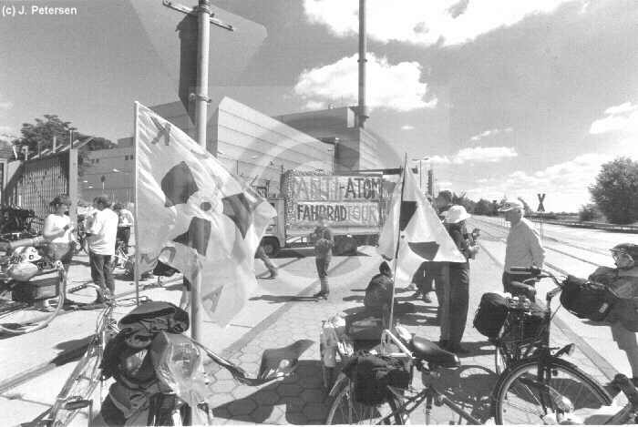 Internationale Widerstandsaktion der Barsebäcksoffensiv vor dem AKW Krümmel am 09.08.00