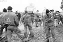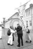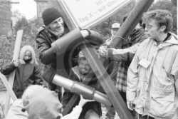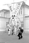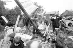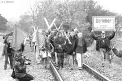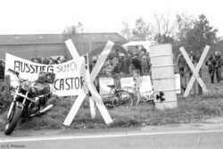 Anti-Castor-Aktionen in Lüneburg und Dannenberg am 03.11.01Gegen 10.30 Uhr am Samstag hissten in einer Blitzaktion Mitglieder der lüneburger Gruppe OTTO/MTG ein riesiges Transparent-X mit der Aufschrift "Aufsteh'n" und "Widersetzen" an einem Fahnenmast vor dem Bahnhof in Lüneburg, um dort Menschen auf ihren Protest gegen den bevorstehenden Castor-Transport aufmerksam zu machen. Die gleiche Gruppe hatte bereits am 13. Oktober eine ähnliche Aktion sehr erfolgreich auf dem Marktplatz in Lüneburg initiiert. In Dannenberg hatte die dortige Bürgerinitiative zur Einweihung ihrer neuen Info-Wiese in der Nähe des Westbahnhofs eingeladen. Musik, warme Getränke und Kartoffelpuffer sorgten für das Wohl der etwa 200 Anwesenden. Diese zogen gegen Mittag in einem Protestzug durch Dannenberg zum Marktplatz, wobei sie mit Billigung der Polizei auch ein stillgelegtes Bahngleis beschritten. Am Rande des Markplatzes steht ein X aus Schienenstücken, welches 1996 während einer Anti-Castor-Aktion namens "Frühjahrsputz" zusammengeschweißt und anschließend der Stadt Dannenberg als Denkmal übereignet worden war. Seit nach der letzten Kommunalwahl in Dannenberg die CDU regiert, befürchten die Castor-GegnerInnen, dass der Bürgermeister das Denkmal entfernen will. Daher rief ein "Kulturdezernent der Freien Republik Wendland" in seiner Rede die Anwesenden auf, das Denkmal gut zu bewachen. Es wurde auch gleich von einigen AkteurInnen vorgeführt, wie das zu bewerkstelligen sei: indem man sich zum Beispeil mit Seil- oder Bügelschlössern an ein Schienenstück kettet und dabei auch noch spezielle Rohre oder auch nur ein einfaches Ofenrohr benutzt, um das Entfernen der Ketten zu erschweren. Ironische Anspielungen auf Aktionen bei Castor-Transporten kamen bei den Umstehenden gut an. Gegen 14 Uhr rief die Kampagne X-tausendmal quer die Anwesenden zum Training für eine Sitzblockade auf, die unter dem Motto "WiderSetzen - große Bürgerinnen- und Bürger-Blockade gegen den Castor" dem bevorstehenden Castor-Transportes nach Gorleben entschiedenen zivilen Ungehorsam entgegenstellen will. Bei diesem Verhaltenstraining ging es darum, zu lernen, bei polizeilicher Räumung von Sitzblockaden ruhig und gelassen zu bleiben, damit die Situation nicht eskaliert. Rollenspiele sollten die Wirklichkeit simulieren: Ein Teil der Gruppe spielte Polizei, der andere BlockiererInnen. Trotz des ernsten Hintergrundes sorgte viel eingebrachter Humor für eine überaus erheiternde Veranstaltung. (4.11.01) |