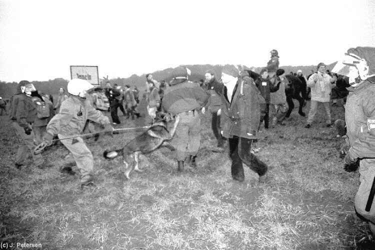 Nr. 12 © Gisela und Joachim Petersen, subkontur Auch Hunde werden eingesetzt, zunächst noch mit Maulkorb. Während dieser Phase wird Jochen Stay (im Foto oben rechts), Pressesprecher von X-tausendmal quer, festgenommen.