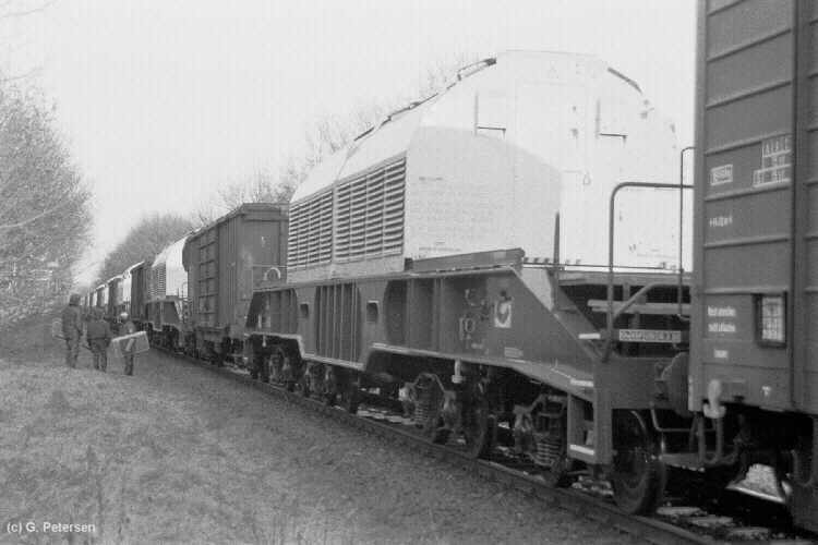 Und steht und steht und ... Auf der Fahrt nach Wendisch-Evern kam der Castor-Zug wiederholt zum Stehen, zum Beispiel durch die spektakuläre Kletteraktion eines einzelnen Demonstranten auf den Castor, welche durch alle Medien ging. | |