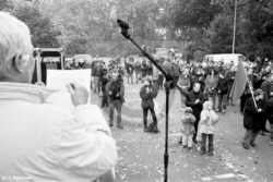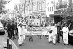 Castor-Aktionstag - Demonstration in Uelzen am 20.10.01Belagerungszustand? Nein danke! - Unter diesem Motto hatten verschiedene Atom-Widerstandsgruppen im Raume Lüneburg, Uelzen und im Wendland zu einem Aktionstag aufgerufen. Anlass war der für November erwartete Castor-Transport nach Gorleben, welcher schon im Vorfelde mit einem Belagerungszustand und einem System der totalen Kontrolle der betroffenen Regionen durch die Polizei einhergehe. Hausdurchsuchungen, Telefonüberwachungen, Demonstrationsverbote und Kriminalisierung führten dazu, dass sich Menschen jederzeit kontrolliert und diskriminiert fühlen müssten und noch nicht einmal auf ihrem eigenen Grundstück unbehelligt leben könnten. In Uelzen hatten sich ca. 250 AtomkraftgegnerInnen auf dem Hammersteinplatz versammelt, um gegen diese Zustände zu protestieren. Sie wollten nicht warten, bis der Castor komme - die Ruhe sei vorbei. Nach mehreren Redebeiträgen zogen die DemonstrantInnen begleitet von einem starken Polizeiaufgebot durch die uelzener Innenstadt. Zum Hammersteinplatz zurückgekehrt, fand dort eine Abschlusskundgebung statt, welche den offiziellen Teil der Demonstration beendete. Danach versuchte eine Gruppe von etwa 150 DemonstrantInnen, in einem Überraschungscoup eine naheliegende Fernstraßenüberführung zu erreichen, um dort den Verkehr zu blockieren und Flugblätter zu verteilen. Schon auf halbem Wege gelang es ihnen, die Straße zu vereinnahmen, so dass es auch für die mit Blaulicht nachfolgenden Polizeifahrzeuge zunächst kein Durchkommen gab. Schließlich war ein größeres Polizeiaufgebot herbeigeeilt und drängte die DemonstrantInnen von der Straße. Letztere verzichteten trotz zahlenmäßiger Überlegenheit auf eine Auseinandersetzung und zogen auf dem Fußgängerweg zur Brücke weiter. Dort angelangt, befestigten sie weithin sichtbar ihre Transparente. Auf Grund einer Absprache mit der Polizei konnten einige DemonstrantInnen Flugblätter an die Insassen der im Schritttempo vorbeifahrenden Autos verteilen. Nach etwa einer halben Stunde löste sich diese Aktion auf. Für den Nachmittag war noch ein Widerstands-Aktionstraining auf dem Albrecht- Thaer-Platz geplant. (21.10.01) |
