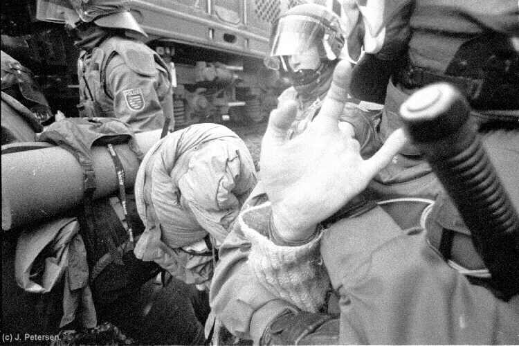 Nr. 32 zu Castor 2001: X-tausendmal-quer: Gleisbesetzung bei Wendisch-Evern am 26.03.01