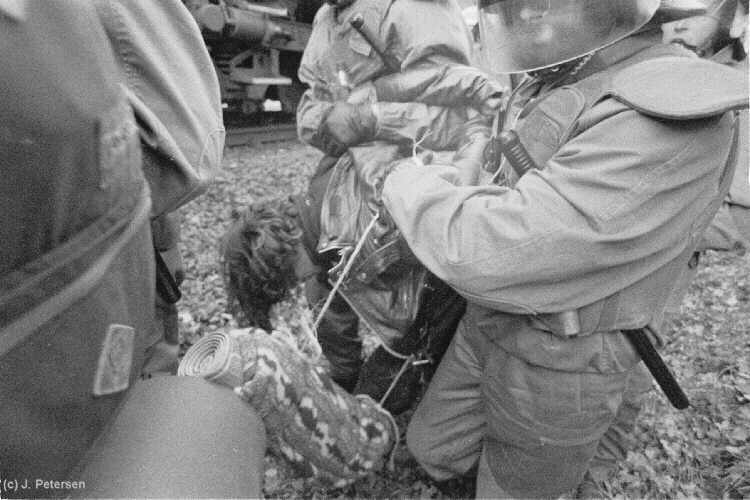 Nr. 33 zu Castor 2001: X-tausendmal-quer: Gleisbesetzung bei Wendisch-Evern am 26.03.01