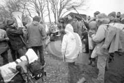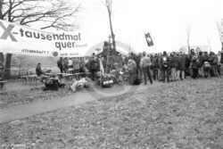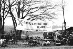 Castor 2001 Im "Camp" von X-tausendmalquer bei Wendisch-Evern am 24.03.01 Nachdem das Oberverwaltungsgericht Lüneburg ein Versammlungsverbot für die Initiative X-tausendmalquer im Zentrum von Wendisch-Evern bestätigt hatte, wurde es der Initiative erlaubt, eine sogenannte Protestversammlung etwa 1 km vom Castorgleis entfernt auf einem Parkplatz an der Kreisstraße 37 durchzuführen, zu der auch eine Infrastruktur mit Strom, Toiletten und Sanitätszelt gehörte. Ausdrücklich verboten allerdings war das Zelten. So waren die TeilnehmerInnen gezwungen, die bitterkalte Nacht im Freien zu verbringen, lediglich ein wenig durch Strohballen vor dem eiskalten Wind geschützt, welcher über die Äcker pfiff. Die Fotos entstanden im Anschluß an die Großdemonstration in Lüneburg. Von dort aus waren viele TeilnehmerInnen in ihre Camps (sofern diese nicht auch verboten waren) gereist. Die Fotos zeigen gerade stattfindende Beratungen und Abstimmungen im SprecherInnenrat, der sich u.a. damit befaßte, wie man die Nacht verbringen und ob man sich an die behördlichen Auflagen halten wolle. |