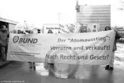 Katastrophenschutzübung Krümmel 2002 am 27.04.02Am Sonnabend, den 27. April 2002 übten Feuerwehr und Rettungsdienste den Störfall im Atomkraftwerk Krümmel. Als Ausgangsbasis für die Übung galt die Annahme eines geplatzten Kühlrohres (wie im Dezember 2001 im AKW Brunsbüttel) mit dem Ausfall aller Sicherungssysteme und dem Austreten von Radioaktivität. In der die angrenzenden norddeutschen Länder übergreifenden Übung waren u.a. Messtrupps mit Spezialfahrzeugen im Einsatz, die Boden-, Pflanzen- und Wasserproben entnahmen und ihre Messergebnisse an eine in Kiel eingerichtete Messzentrale übermittelten. Die Messübung hatte das Ziel, eine nach der Katastrophenübung "Krümmel 99" neu entwickelte Konzeption mit einheitlicher Standardisierung der Messungen und des elektronischen Datenaustausches zu erproben, um möglichst schnell und zentral zu einer sicheren Einschätzung der Kontaminierungslage in den vier beteiligten Bundeländern kommen zu können. Auf der Pressekonferenz beim AKW Krümmel stellten die Staatssekretäre der beteiligten Länder heraus, dass die Übung ihre Ziele voll erreicht habe und das neue Konzept in seiner Richtigkeit bestätigt sei. Das zunächst speziell für Krümmel entworfene Einsatzkonzept soll zukünftig auch für die Atomkraftwerke in Brunsbüttel und Brokdorf eingesetzt werden. Für das Jahr 2004 ist eine nächste Übung geplant. Während der Pressekonferenz kam es zu Protesten von AtomkraftgegnerInnen; denn der Termin für diese Übung hatte, einen Tag nach dem 16. Jahrestag der Reaktorkatastrophe von Tschernobyl, natürlich Herausforderungscharakter. So hatten sich bereits am Vormittag im nahegelegenen Geesthacht KernkraftgegnerInnen aus Hamburg und aus dem Wendland versammelt, um dort in der Fußgängerzone mittels Infostand, Aktionen und einem satirischen Aktionstheater die PassantInnen auf die Risiken der Kernenergie und auf die Unmöglichkeit eines effektiven Katastrophenschutzes hinzuweisen. Satirisches Motto: "Katastrophenschutz schützt vor Katastrophen? Schütz dich vor Katastrophenschutz!" Auf dem Gelände des AKW demonstrierten sie dann mit Plakaten und großen Transparenten. Dabei kam es auch zu erregten Diskussionen insbesondere mit dem Staatssekretär Voigt (von den Grünen) aus Schleswig-Holstein. Einer der Hauptvorwürfe lautete, diese Übung sei eine Beruhigungspille ohne Wirkung, weil sie nur auf Behördenebene gemacht werde und weil es einen Katastrophenschutz für den kritischen Fall, den Super-Gau, nicht geben könne. Wie recht sie damit haben, zeigte Staatssekretär Voigt, als er auf die Aufforderungen von AtomkraftgegnerInnen, das Szenario von Tschernobyl in Krümmel zu üben, antwortete, Katastrophen im Tschernobylumfang seien nicht beherrschbar und führten zwangsläufig zur Begründung für einen sofortigen Atomausstieg. |
