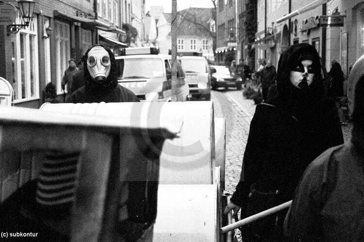 Theateraktion in Lüneburg gegen den bevorstehenden Castor-Transport am 08.11.02