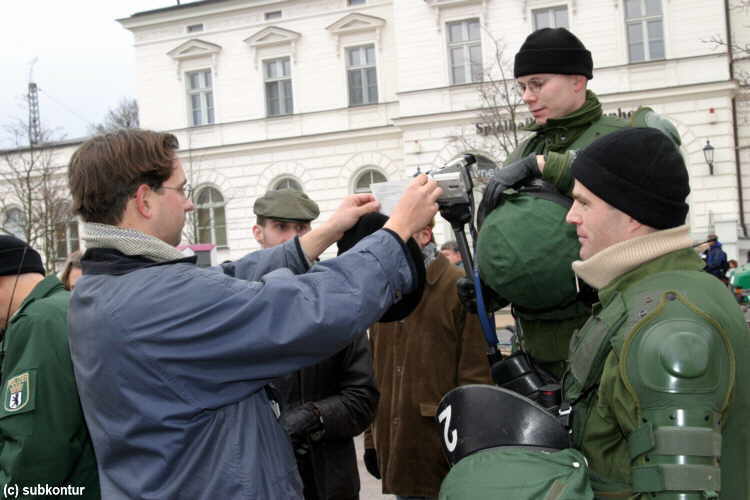 Nr. 4 Ein Anwesender beschwert sich über die seiner Meinung nach widerrechtlichen Videoaufnahmen durch die Polizei. © Gisela und Joachim Petersen, subkontur
