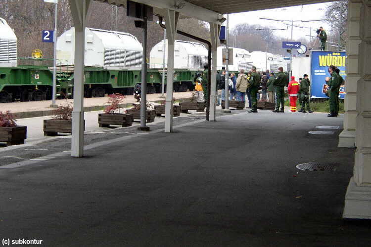 Nr. 6 Gut abgeschirmt von der Öffentlichkeit: Kurzer Zwischenstopp des Castortransportes auf dem Westbahnhof in Lüneburg. © Gisela und Joachim Petersen, subkontur