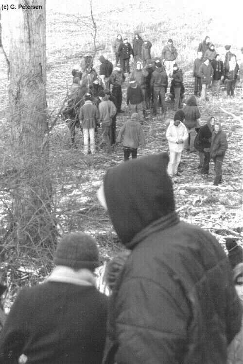 Nicht alle schaffen es, vor dem Eintreffen der Polizei die Bahnböschung zu erklimmen.