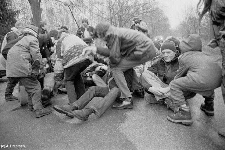Etwa 300 AtomkraftgegnerInnen hatten sich am Sonnabend, den 3. März im wendländischen Ort Pisselberg zu der Gleisaktion "Eine Nacht im Gleisbett" eingefunden. Gegen 18.30 Uhr gelang es einer Gruppe von 70 bis 80 DemonstrantInnen, das Castor-Gleis zum ersten Mal zu vereinnahmen. Der erste Räumungseinsatz von Polizei und BGS erfolgte prompt (s. Foto o.). Trotz Eiseskälte fanden bis zum frühen Morgen auf Straße und Schiene weitere Widerstandsaktionen statt. 36 Personen wurden im Laufe der Nacht in polizeilichen Gewahrsam genommen.