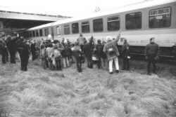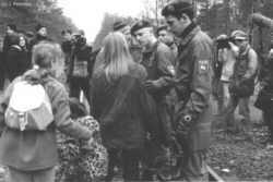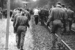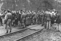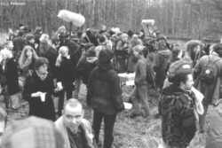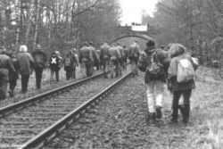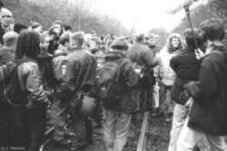 Spaziergang an der CASTOR-Strecke Am 11. Februar versammelten sich im Forst Tiergarten bei Lüneburg etwa 300 AtomkraftgegnerInnen, um gemeinsam die letzte Etappe der Castor-Gleisstrecke zwischen Lüneburg und Dannenberg zu begehen. Zu dem Spaziergang aufgerufen hatten die Aktion "X-1000mal-Quer" und das AktionsBündnisCastor (ABC) aus Lüneburg. Die Etappe Lüneburg - Wendisch-Evern ist bereits castorgeschichtsträchtig, gelang es doch AtomkraftgegnerInnen durch einen Überraschungscoup im März 1997, den Castor-Sixpack nach Gorleben durch eine Sitzblockade etwa eine Stunde lang aufzuhalten. Da das Bahngelände bei Wendisch-Evern für derartige Aktionen günstig ist, hat die Aktion "X-1000mal-Quer" dort für Ende März, wenn die nächsten Castoren rollen sollen, ein Widerstandcamp geplant. So galt der Spaziergang natürlich auch der Orientierung und Erkundung der Gleisstrecke. Vor diesem Hintergrund war natürlich reichlich Presse präsent. Polizei und BGS hatten etwa 120 BeamtInnen aufgeboten, welche z.T. in übermotivierter und kleinlicher Beharrlichkeit darauf achteten, daß niemand das Gleis betrat oder überquerte. So wurde ein Pressefotograf nach einer kurzen Überquerung des Gleises sofort mit einer Anzeige (Verwarngeld) bedacht. (16.02.01) |