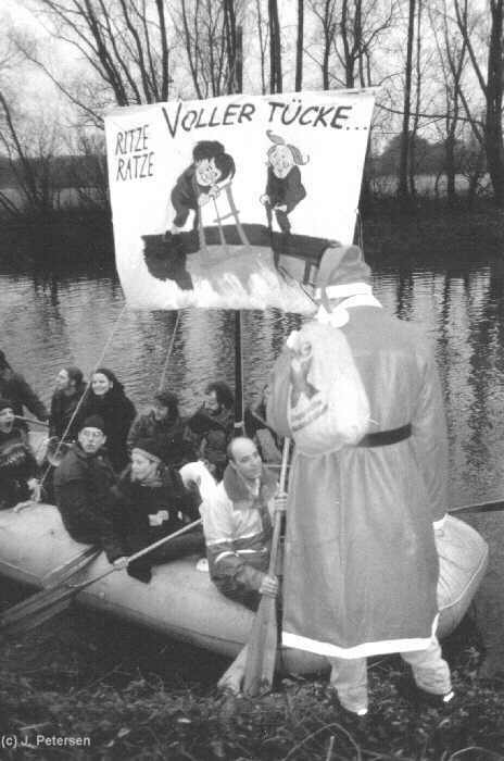 Bescherung durch den Nikolaus gab es auch für eine Gruppe Fans von Wilhelm Busch (Erfinder der subversiven Geschöpfe Max und Moritz), welche es sich vorgenommen hatten, per Jeetzel die Brückenbaustelle zu erreichen. |