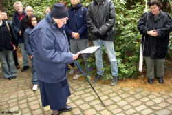 Volkstrauertag - Gedenken an Kriegsverbrechen in LüneburgAm 16. November fand am Ehrenmal im Lüneburger Forst Tiergarten eine Gedenkveranstaltung statt. Wird überall am Volkstrauertag in ungezählten Veranstaltungen der im Zweiten Weltkrieg gefallenen Soldaten gedacht, so setzte diese Veranstaltung einen ganz anderen Schwerpunkt: Sie widmete sich denjenigen Menschen, welche sich gegen den Nationalsozialismus stellten und aus diesem Grunde oder auch wegen ihrer "Rasse" in Konzentrationslagern litten und dort ihr Leben ließen. Im Forst Tiergarten liegen 256 KZ-Häftlinge begraben, welche in den letzten Kriegstagen von Wilhelmshafen nach Lüneburg transportiert worden waren. Manche starben schon auf der Fahrt aus Entkräftung, andere wurden Opfer eines Angriffs britischer Bomber auf Lüneburg. Diejenigen, welche beides überlebten, wurden von ihren Bewachern (Angehörige der SS und der Wehrmacht) ermordet. Das damalige schreckliche Geschehen brachte Immo de Vries den etwa 20 Anwesenden nahe, als er einen Text aus seinem Buch „Kriegsverbrechen in Lüneburg“ vortrug. Diese wurden davon sichtlich bewegt. Helga von der Hellen trug das Gedicht „Kollektivschuld“ von Wolfgang Bittner vor, welches die Einstellung ihrer Generation zu den damaligen Verbrechen deutlich machen sollte. Das Gedenken wurde mit einem weiteren Vortrag „Gespräch mit einem Überlebenden“ von Erich Fried ergänzt. Bewegend gestaltete sich auch der Abschluss der Gedenkveranstaltung, als die Anwesenden das Lied „Wir sind die Moorsoldaten“ anstimmten, das von Werner Hopfgart auf der Ziehharmonika begleitet wurde. An der Kranzniederlegung neben der Gedenktafel beteiligten sich auch Schülerinnen einer 9. Klasse der Hauptschule Kaltenmoor mit einem Gesteck. Peter Asmussen vom VVN bat die Anwesenden, sich an dem Protest gegen die für den 29. November in Lüneburg geplante Demonstration der NPD zu beteiligen. Es sei unerträglich, wenn Nazis an einem Gedenkstein vorbeimarschierten, der an die Deportation jüdischer Mitbürger in der NS-Zeit erinnert. |
