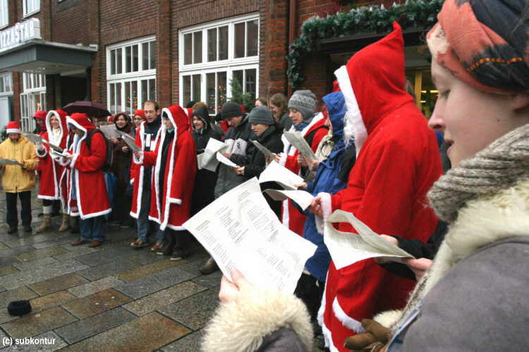 Nach der Melodie "Lasst uns froh und munter sein": ... Wulff ist nur sozial zum Schein Was kümmert ihn des Schuldners Pein Schäm dich, schäm dich, tralalalala Bald ist Niedersachsens Untergang da Bald ist Niedersachsens Untergang da ...