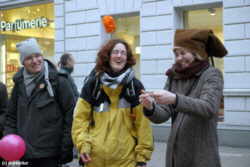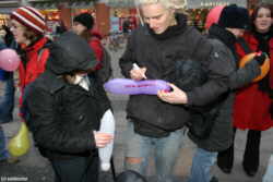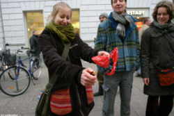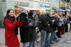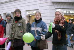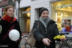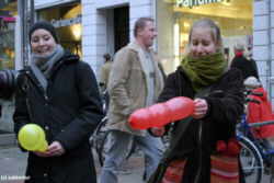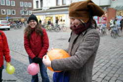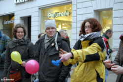 fotografie / presse-archiv© Gisela und Joachim Petersen, subkonturKontakt: siehe Startseite STARTSEITE Streikende StundentInnen lassen Bildungsträume platzenIm Rahmen der studentischen Protestveranstaltungen während der Streikwoche an der Universität Lüneburg versammelten sich am 23.01. etwa 30 StudentInnen am Rande des Marktplatzes, um eine sehr ansprechende politische Aktion vorzubereiten:Da wurden zunächst Luftballons verteilt, die aufgeblasen werden mussten. Diese Handlung gestaltete sich zu einem Ereignis, bei dem viel gelacht wurde, zeigte sich doch das Aufblasen bei einigen TeilnehmerInnen als überaus schwierig. Je mehr Fehlversuche sich bei diesen einstellten, desto schneller erfolgte der Zwangsabbruch des Aufblasens wegen eines spontanen und unwiderstehlichen Lachreizes. Das lockerte aber auf und schließlich waren doch alle Ballons so weit gefüllt, dass sie als Schreibfläche geeignet angesehen werden konnten. Nun machten sogenannte „Eddings“ die Runde und verwandelten die Luftballons in symbolische Bildungsträume wie „Bildung für alle - und zwar umsonst!“oder „Reiche Eltern für alle!“ Auf ein Zeichen begab sich die Gruppe dann in die naheliegende Bäckerstraße und bildete dort eine lange Reihe. Überall gespannte Erwartung. Das erste Feuerzeug wurde gezückt, die Flamme gezündet und ein wenig ängstlich unter den bunten „Bildungstraum“ gehalten. Dann ein Knall, leichtes Erschrecken und folgend ein die Anspannung lösendes Lachen. So starben Knall auf Knall einer nach dem anderen die etwa 30 symbolischen Bildungsträume. Genau das Gegenteil wünschen sich die TeilnehmerInnen. Jedoch angesichts der Trends in der Bildungs- und Sozialpolitik müssen sie das Zerplatzen ihrer Bildungsträume befürchten. Deshalb die öffentliche Aktion. Diese haben wir mit vielen Fotos dokumentiert, um ihr das verdiente Gewicht zu geben. Weitere Informationen gibt es beim ASTA der Universität Lüneburg. Die folgenden Fotos können als JPG 750x500 zur Ansicht geladen werden. Wir weisen in diesem Zusammenhang ausdrücklich auf unser Copyright hin! | |